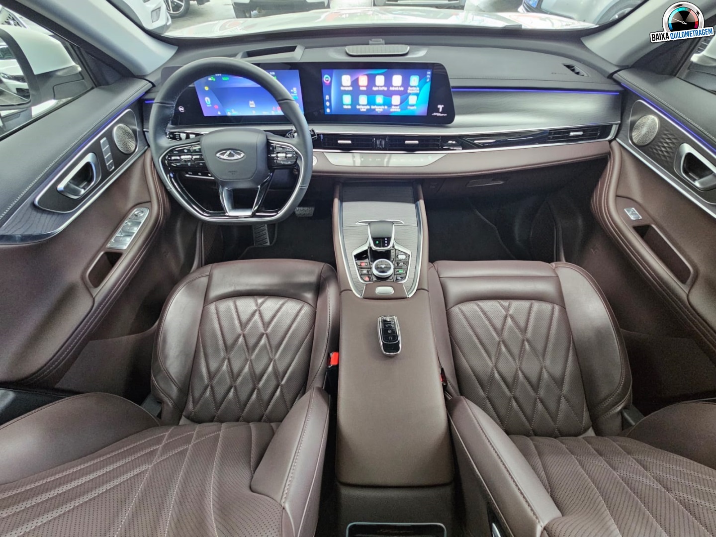 Recursos de Série: Sistema de som premium Sony, teto solar panorâmico, carregador de celular por indução de 50W e câmera 540º (com visão do solo).